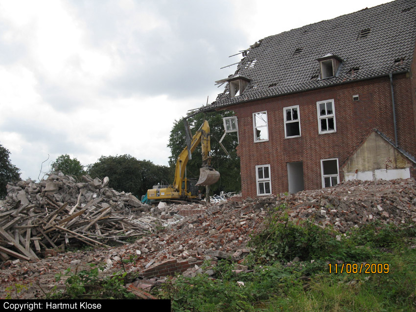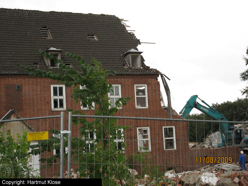 Banter Kaserne / übernächst östliches Gebäude der ehemaligen Kirche gänzlich entfernt / Hauptgebäude östlich des Biosphere-Instituts zu zwei Dritteln abgerissen / Kleinbau im Ostbereich längs der Emsstraße wird abgerissen / 11.08.09