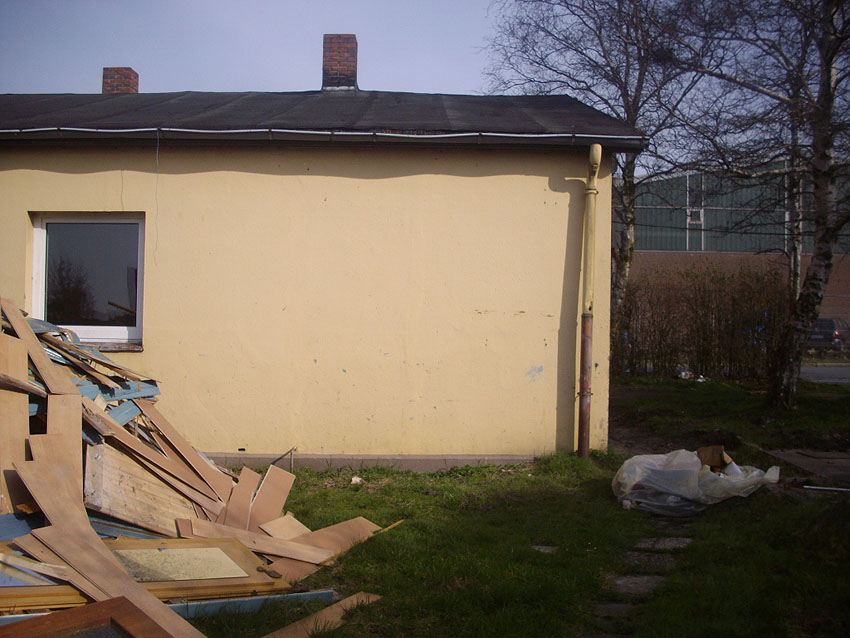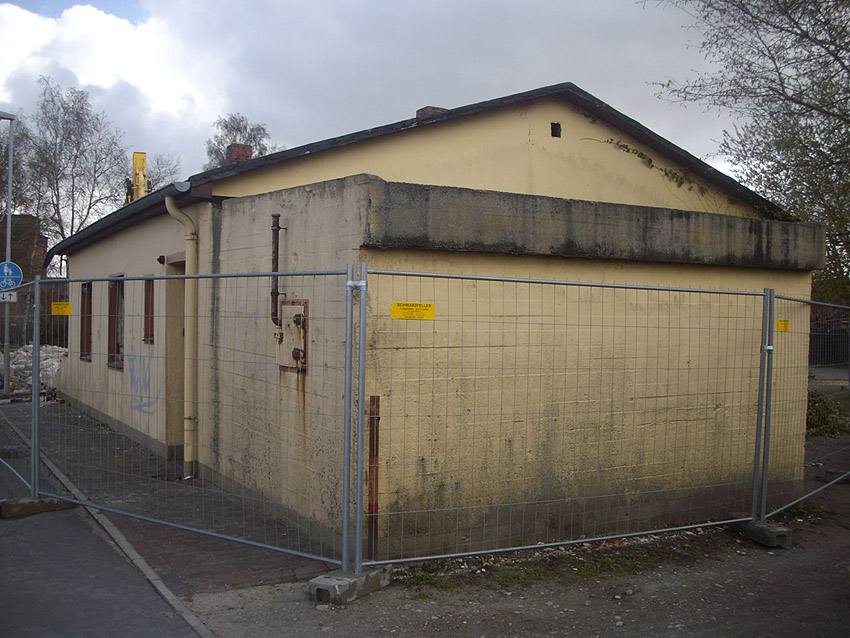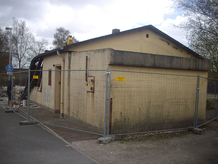 22.04.10: Das Gebäude wurde heute komplett entfernt. Der Bunker ist noch nicht zerstört (aufgrund einer noch nicht angelieferten Spezialabbruchzange). Das Bauwerk steht nun allein. Sein Abriss ist jedoch bereits für morgen, Freitag, 23.04.10 oder Montag, 26.04.10 angesetzt. Noch einmal konnten Innenaufnahmen des Bunkers gemacht werden. Zur Sonderseite mit allen Bildern Hier!