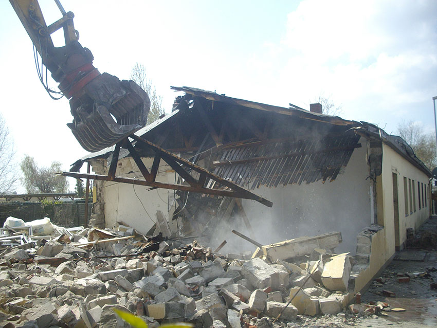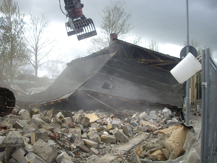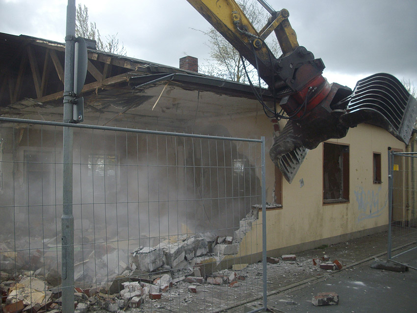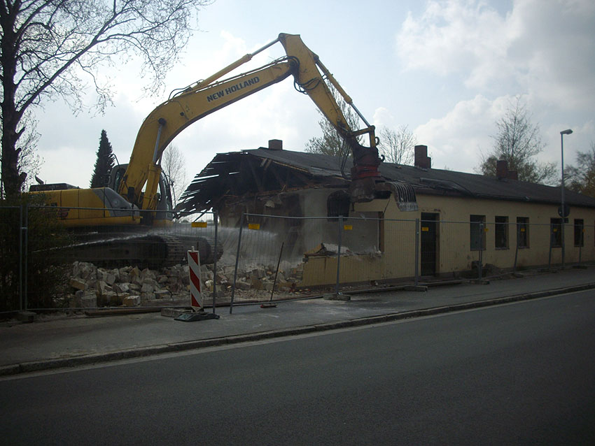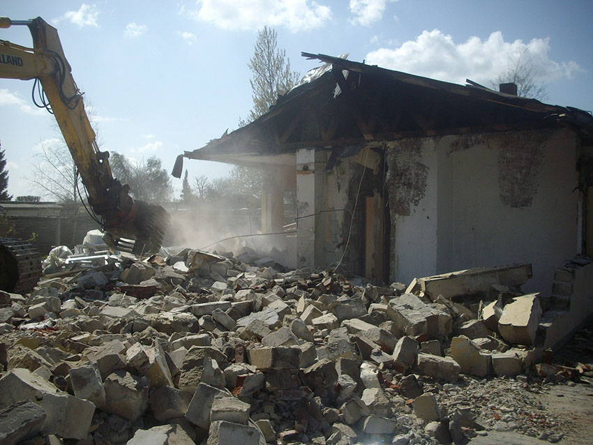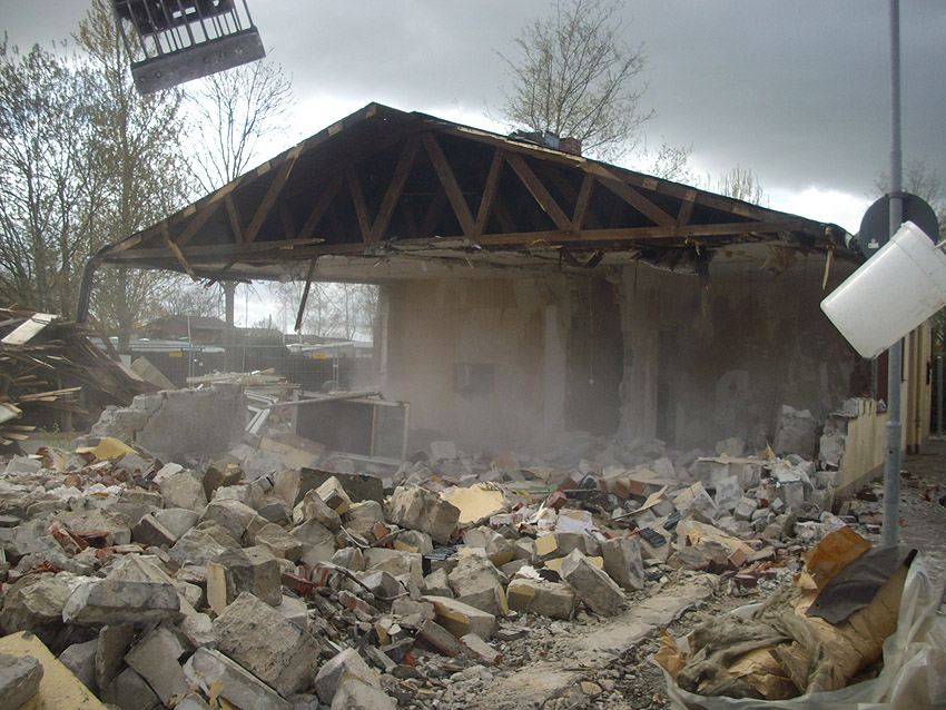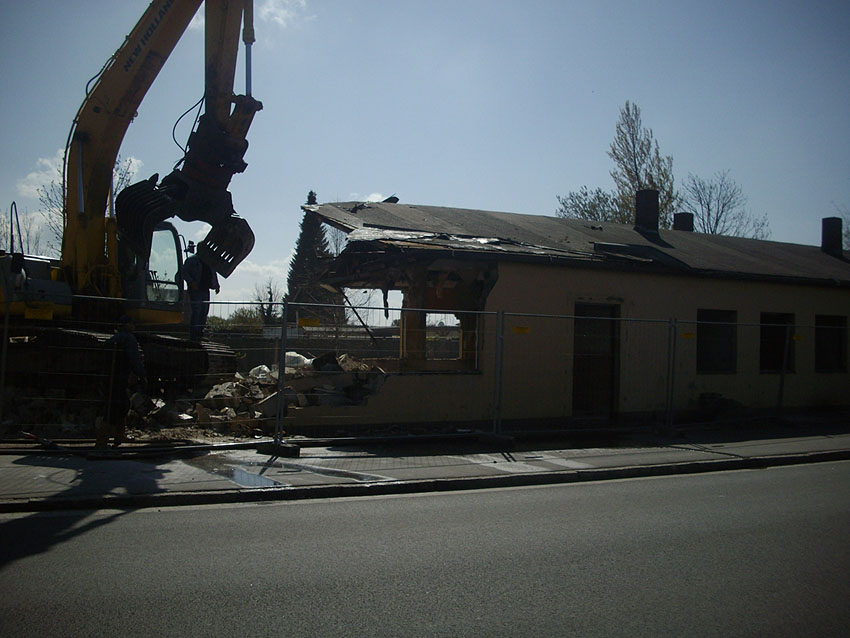 20.04.10: Der Abriss des Gebäudes hat begonnen. Am heutigen Tag wurde bereits über ein Viertel des Objektes vernichtet.