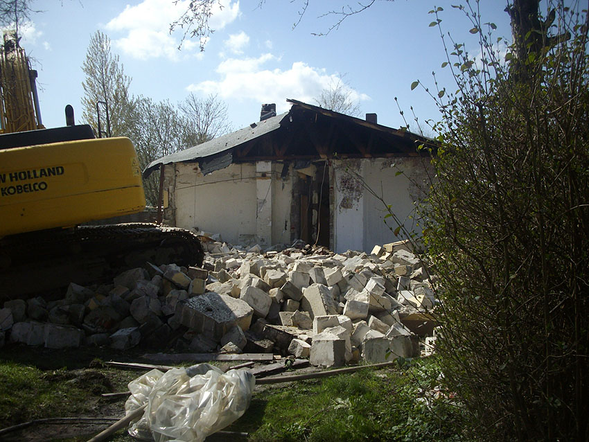 21.04.10: Der Abriss des Gebäudes ist nun bereits zu drei Vierteln vollzogen. Morgen folgt der Rest und der Abriss des kleinen Bunkers. Wir werden vor Ort sein und alles fotografisch festhalten.