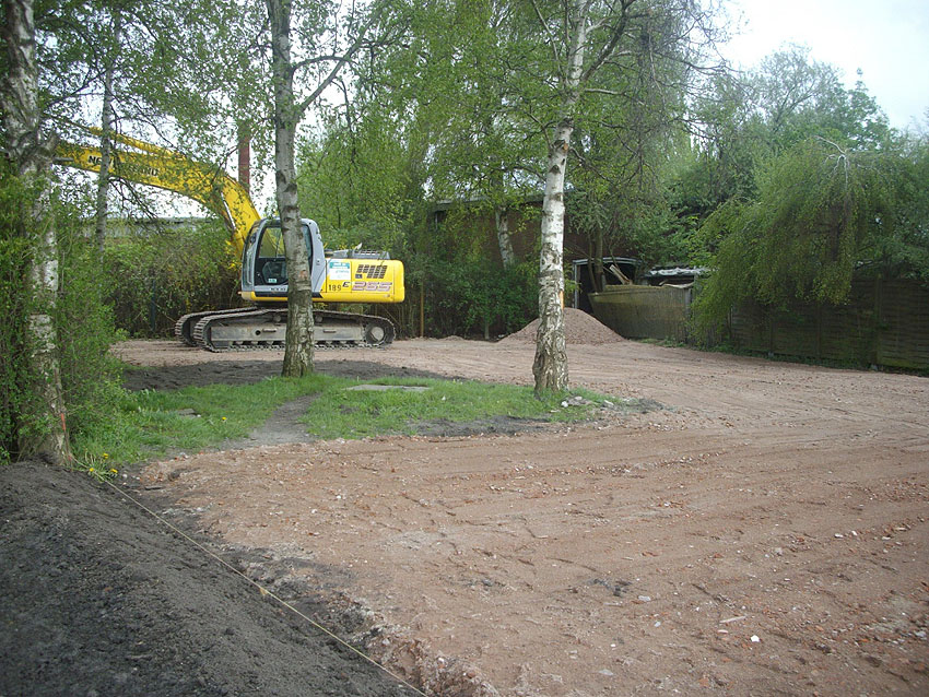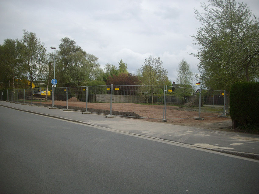 27.04.10: Das Gelände des ehemaligen Bunkers und Gebäudes ist großflächig bereinigt worden. Die Fundamente sind ausgehoben worden, der Bereich des Bunkers wurde mit Sand verfüllt.
