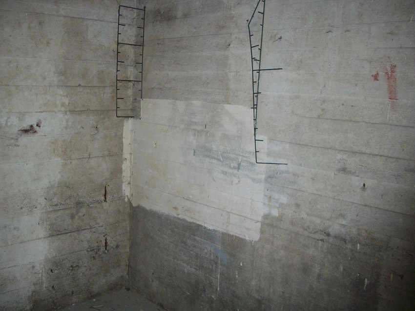 Der Öltank wurde aus dem Bunkerinneren bereits entfernt, am Abrisstag ergab sich daher nun freie Sicht auf die innere Westwand: