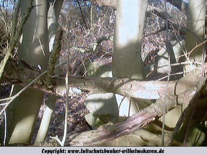 Schließlich an der Zerschellerplatte angelangt, sind Reststrukturen des Erdgeschossbereiches und des Sockels zu erkennen: