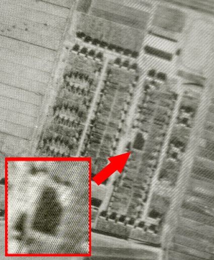 Die Aushubsenke der Bunkerbaustelle ist mit Wasser voll gelaufen. Es könnte eventuell sein, dass die Baustelle zum Kriegsende als Feuerlöschteich genutzt wurde.
