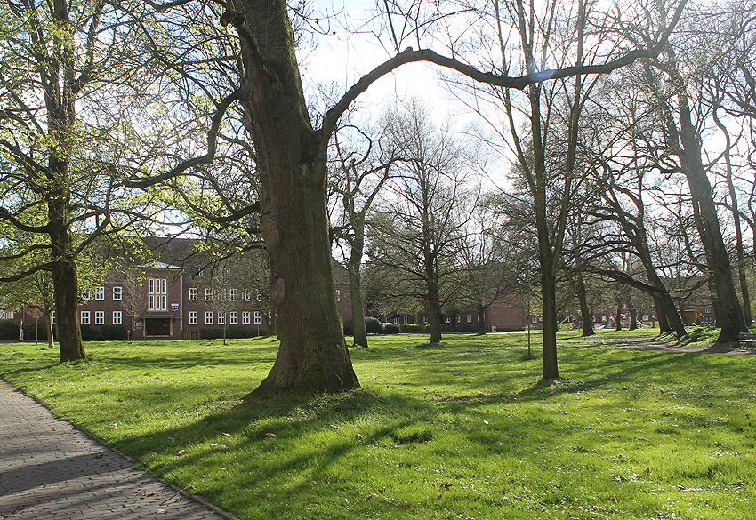 Laut Zeitzeugenbericht soll ein Feuerlöschteich an der Bremer Straße, hier ganz oben links im Bereich des kleinen Gebäudes und dem flachen Objekt links daneben existiert haben. "Dort, wo jetzt die Kirche steht". Es scheint aber dort kein Teich erkennbar zu sein. Der Zeitzeuge weiter: "Ich kann mich auch irren, es ist lange her. Es kann auch der Teich östlich am Krähenbusch gewesen sein". Damit wäre dann der hier vorgestellte Feuerlöschteich am Pfeil gemeint.