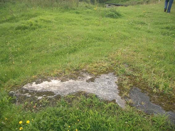 Nur dieser Betonbrocken einige Meter vom Standort entfernt konnte aufgefunden werden. Er scheint durch die Sprengung damals hierhin katapultiert worden zu sein. Natürlich ist es auch denkbar, dass er nachträglich hier abgelegt wurde. Auf jeden Fall wird er jedoch von der Verbunkerung des Infanteriewerkes 2 stammen.
