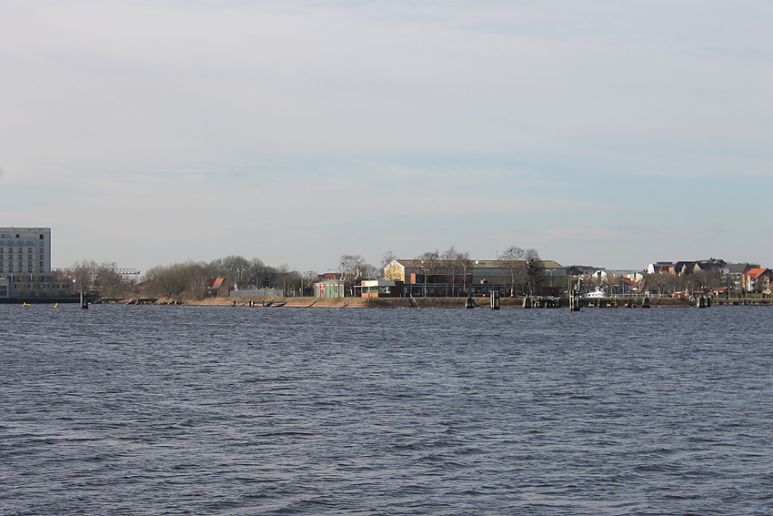 Der Hafenbereich mit dem Bunker (Pfeil Fliegerdeich unten mittig) frühe 1960er Jahre.