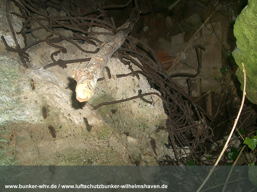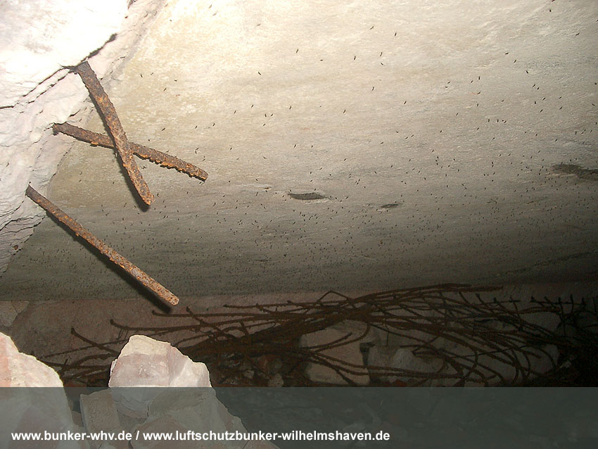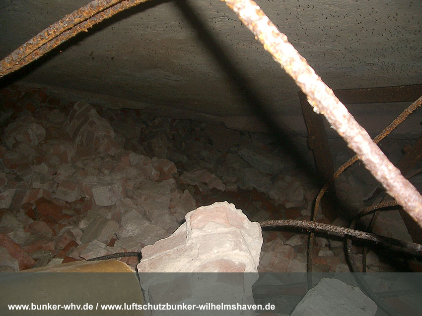 Das gesprengte, verschüttete Innere des Bunkers: