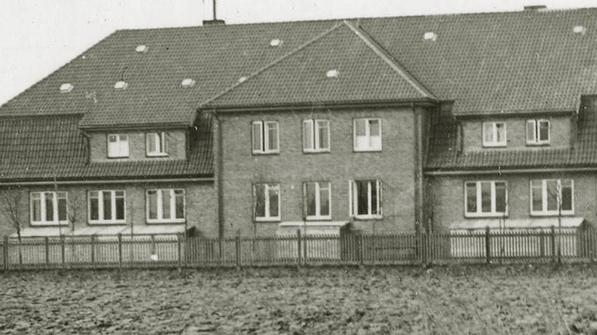 Bild von 1942 / höchstwahrscheinlich Frühjahr. Noch keine Splitterschutzvorbauten an der Südseite des Gebäudes. Auch noch keine beiden Rundbunker nördlich. Diese wurden im Jahre 1943 errichtet.