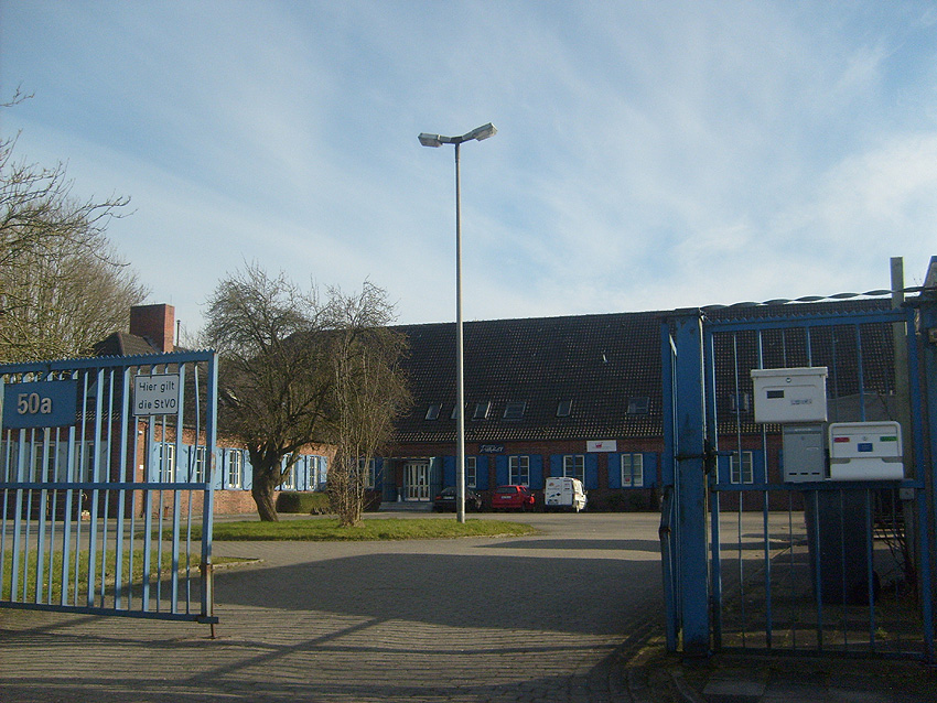 Trafoturm unweit des Gebäudes Antonslust. Ein weiterer Turm befindet sich etwas weiter westlich an der ehemaligen Marine-Nachrichtenstelle Langewerth und ein dritter Turm noch weiter westlich in Richtung Roffhausen. Von dort wird die Leitung nach Norden in Richtung Marine-Nachrichtenstelle Accum abgezweigt sein. Verbund zur schweren Flakstellung Schaar wird ebenfalls bestanden haben.