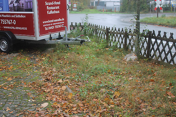 Der Standort heute (mittig dieses Bildes stand die Zelle, die Fundamentplatte ist in Resten noch erhalten), die Straße wird saniert, der Fuß- und Radweg verbreitert...