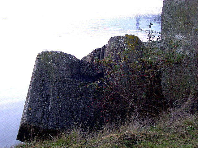 Allerdings ist kein Hohlraum zu erkennen, bzw. es ist unklar, in welcher Position das Objekt ursprünglich stand / lag. Auch relevante Abbruchbereiche aufgrund der damaligen Sprengung bezüglich eines ehemaligen Verbundes mit weiteren Teilbereichen sind hier nicht erkennbar. Ein weiterer, an der Wasserkante liegender größerer Trümmer direkt daneben dürfte aber zum Objekt gehören. Auf Luftbildern von 1945 ist leider nichts erkennbar.