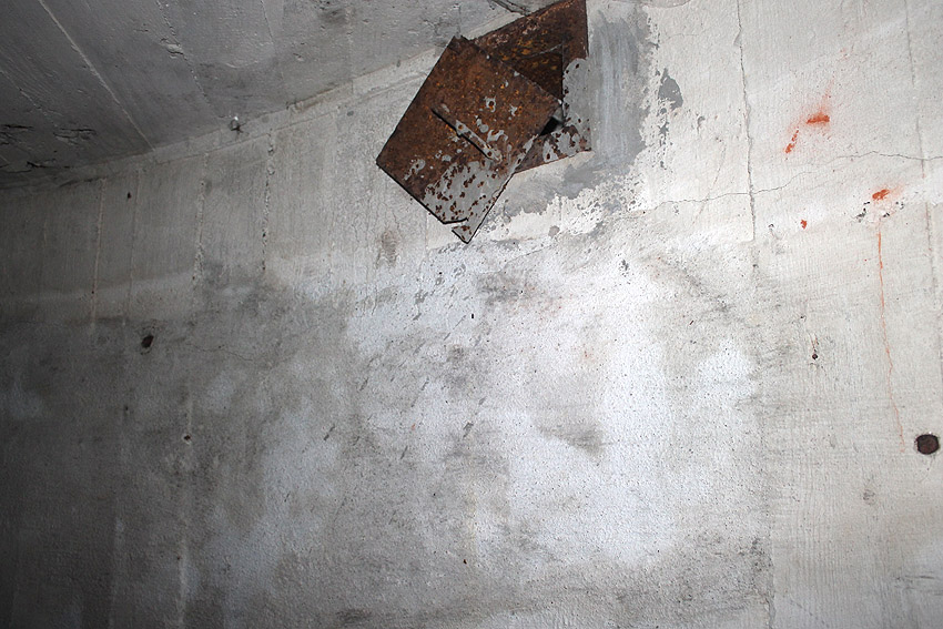 Reste der inneren Verschalung von einem der Lüftungsschächte sind noch heute vorhanden.