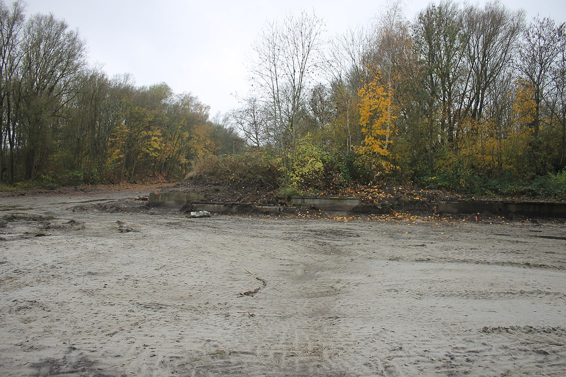 Der gesamte Parkplatz ist erneuert / umgewandelt worden zu einer Stellfläche wohl für Schwerfahrzeuge und ein neues großes Tor wurde an Stelle des alten Tores in die Geländeumzäunung eingebaut.