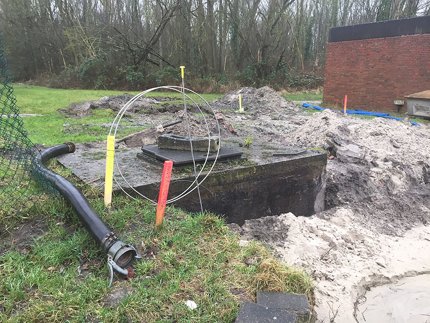 Bautätigkeit im Frühjahr 2011 am Tiefbunker. Der Bunker selbst ist von den Arbeiten jedoch nicht betroffen.