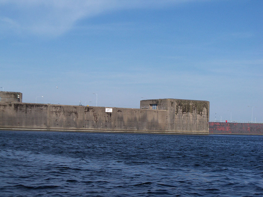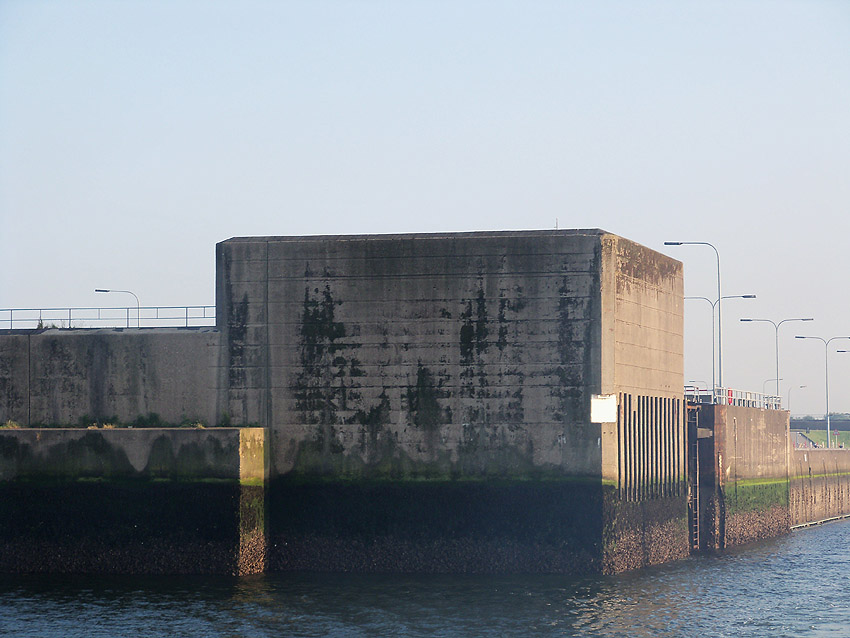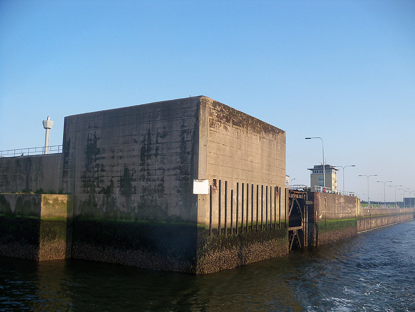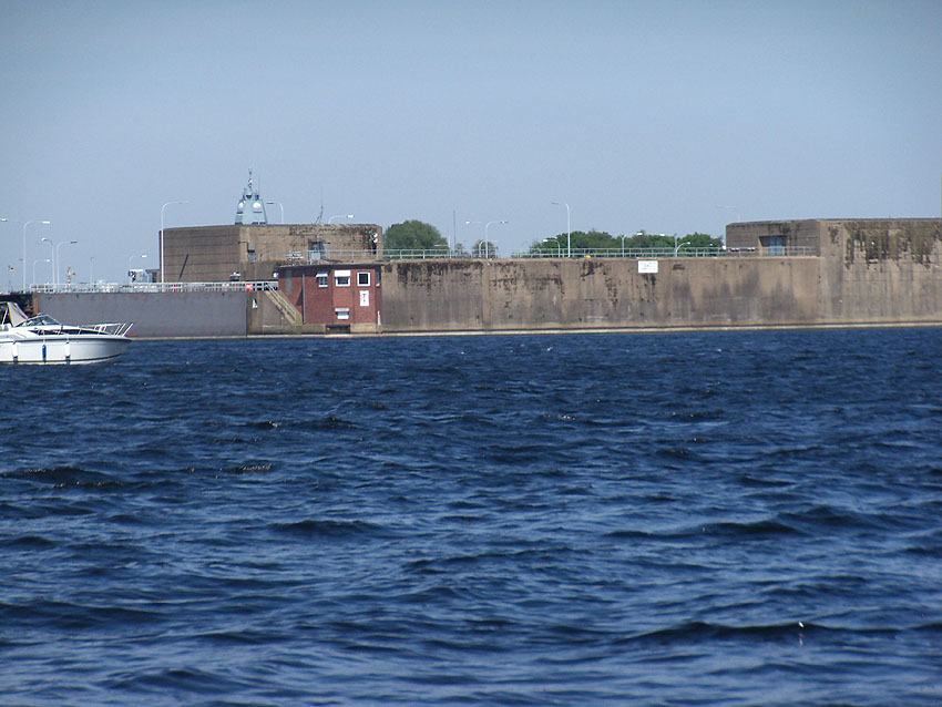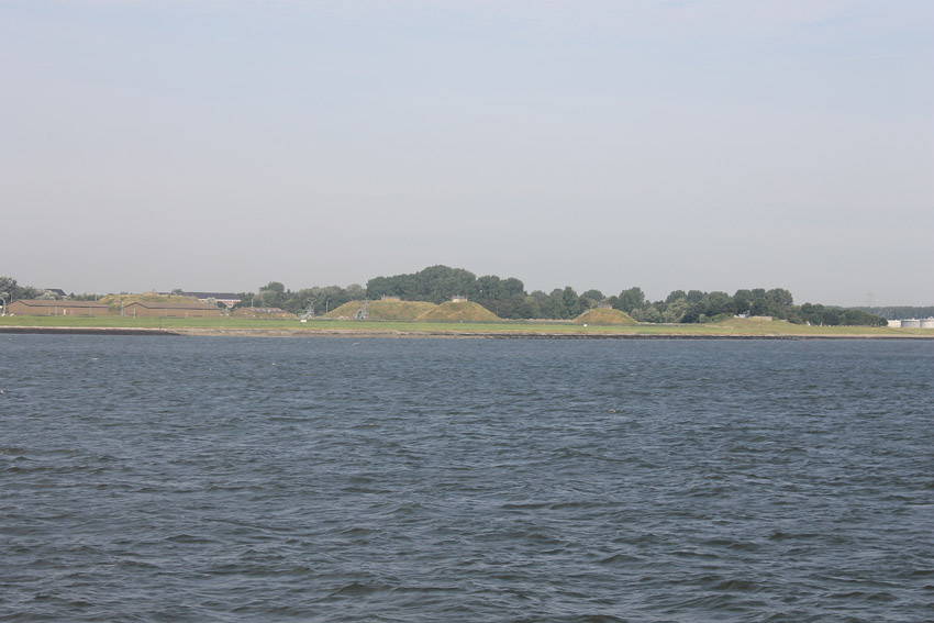 Moderne Treibstoff- und Ölbunker im Bereich des Stützpunktes der 4. Einfahrt (ein so genanntes "Onbase"-Tanklager der NATO). Unweit nördlich davon (hier ganz rechts u.a. im folgenden Bild) der Rüstringer Berg, ehemals schwere Flakstellung Raederschleuse Nord: