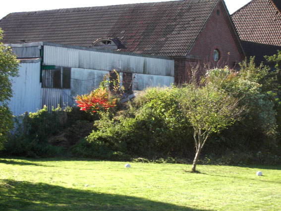 Stand 2015: Der vorhandene Restteil (Nord) des Bunkers wurde mittlerweile durch den anliegenden Eigentümer aus dem nahen Wohngebäude, in dessen Garten das Relikt steht, mit einer Terrasse überbaut und angeböscht.