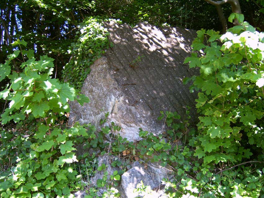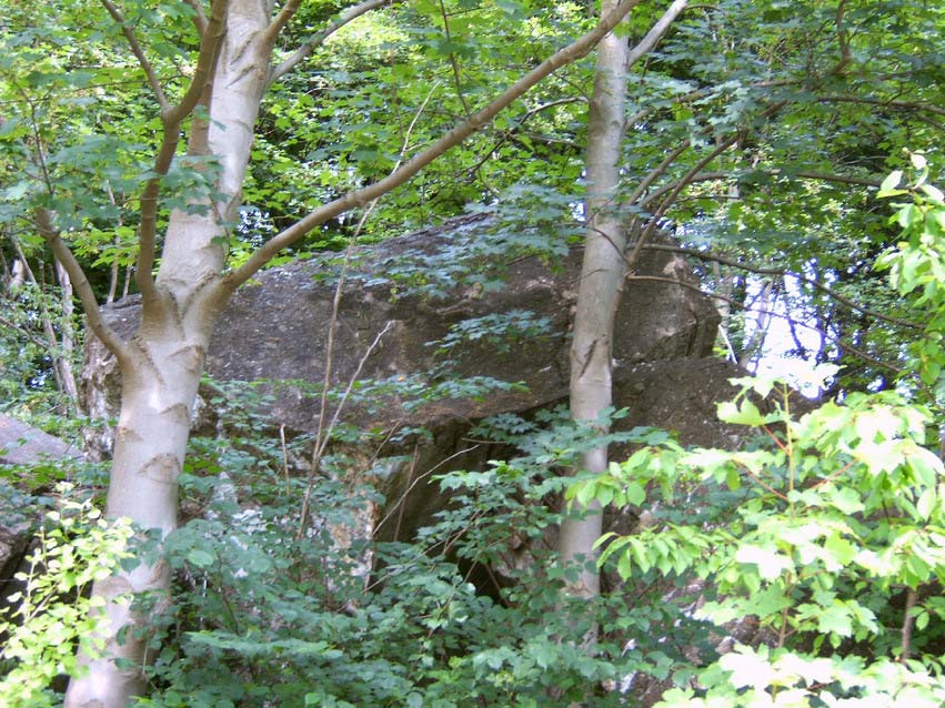 Im nahe der Marineschule gelegenen Osbektal befinden sich zwei weitere durch die Kriegsmarine errichtete Bunker. Der größere der beiden mit den Maßen: Länge ca. 50-60 m, Höhe ca. 5-7 m, Breite ca. 10-15 m, wurde gesprengt. Auch in diesem Bunker soll wie im bereits beschriebenen T 750 eine Marineleitstelle untergebracht gewesen sein. Neben dem Bunker befindet sich ein in den Hang hinein gebauter kleinerer Bunker. Dieser scheint intakt zu sein, hatte im Krieg die Funktion eines Trafobunkers inne und wird noch immer als Trafogebäude genutzt. Vielen Dank noch einmal an Torsten für die Bereitstellung auch folgender Bilder: