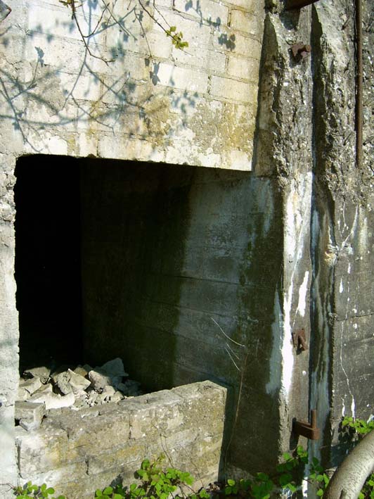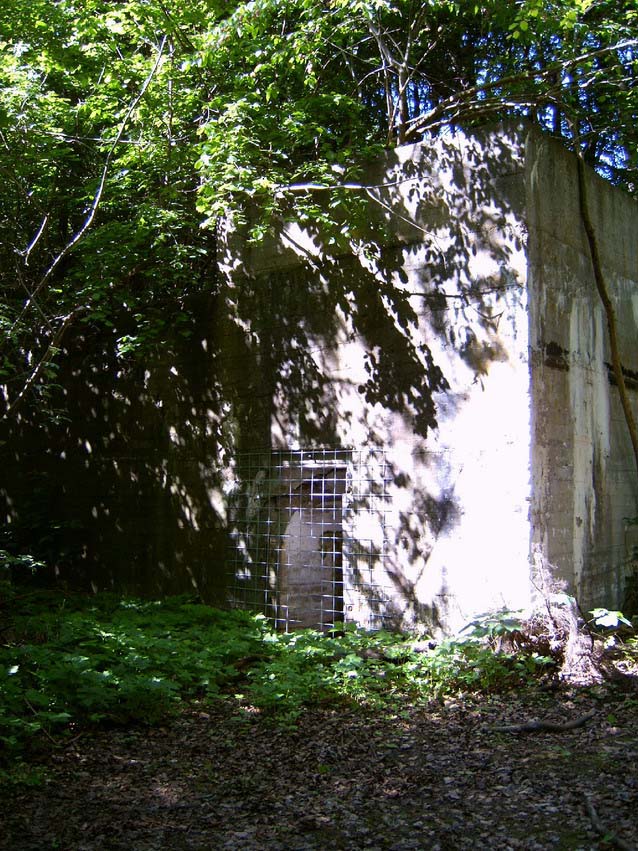 Der zweite, kleinere in den Hang gebaute Bunker (Trafobunker / noch immer als Trafogebäude genutzt):