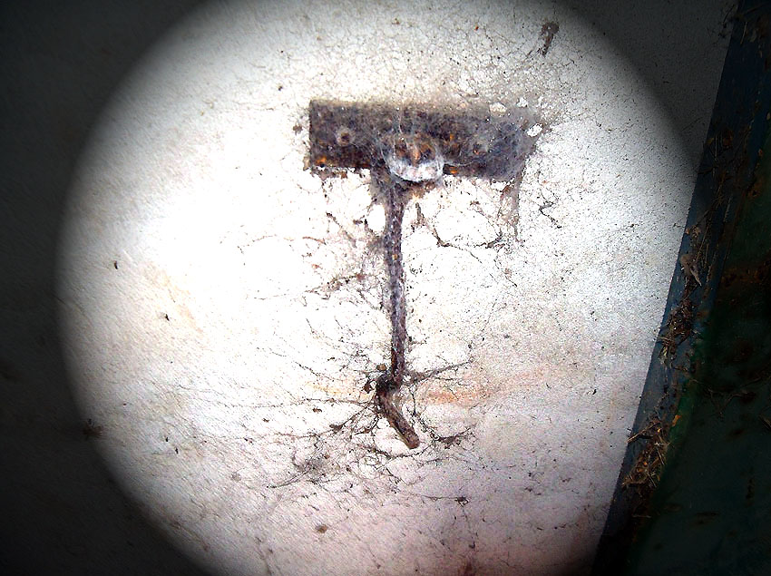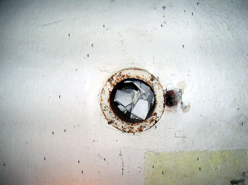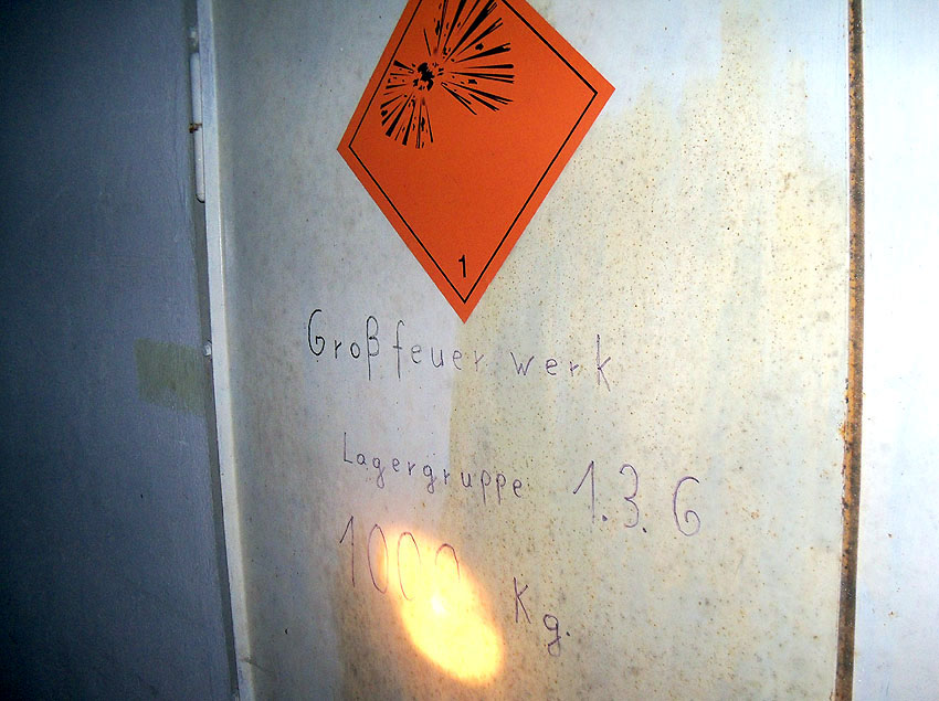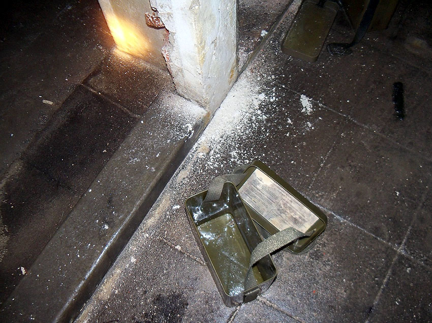 Die folgenden Aufnahmen stammen allesamt aus dem Erdgeschoss. Das Obergeschoss ist aufgrund extremer Feuchtigkeitseinwirkung in Folge starker Undichtigkeiten der Bunkerdecke und stehendem Wasser momentan nur mit Mühe begehbar.