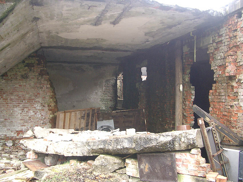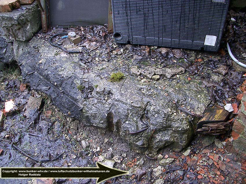 Der eigentliche Bunker im Tiefgeschoss stand zum Zeitpunkt der Begehung unter Wasser. Die Begehung des Bunkers holen wir deshalb im Sommer (die Begehung fand schließlich doch erst am 05.10.06 statt, Anmerkung des Verfassers) nach und zeigen hier heute eine Bilderimpression des durch Sprengung teilbeschädigten Obergeschosses der Anlage. Der zerstörte Bereich ist der Standort des ehemaligen Anbaues mit Beobachterturm, auf dem auch ein leichtes Flakgeschütz stand.