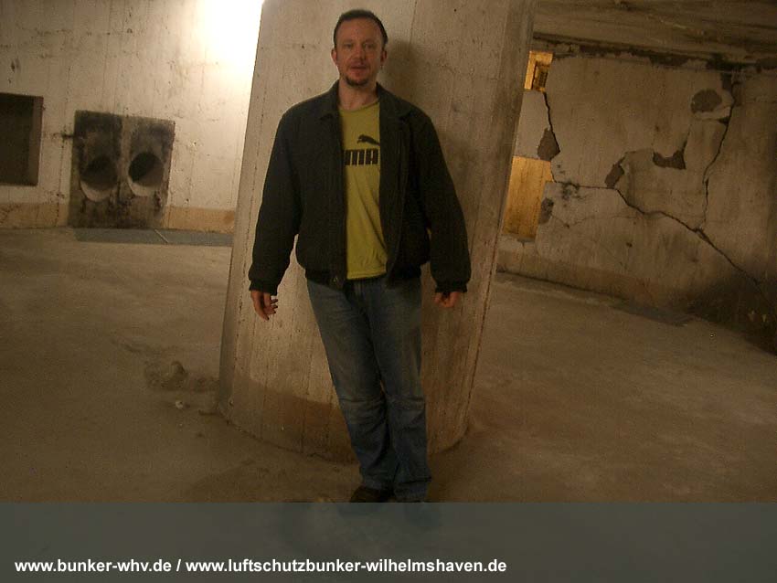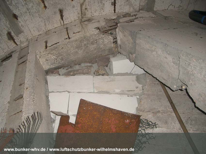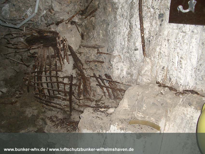 In einem kleinen seitlichen Innenraum, welcher während der Herrichtung vom Alpenverein, dem der Bunker seit 1984 gehört, geschaffen wurde. Schon hier ist die Schräglage erkennbar: