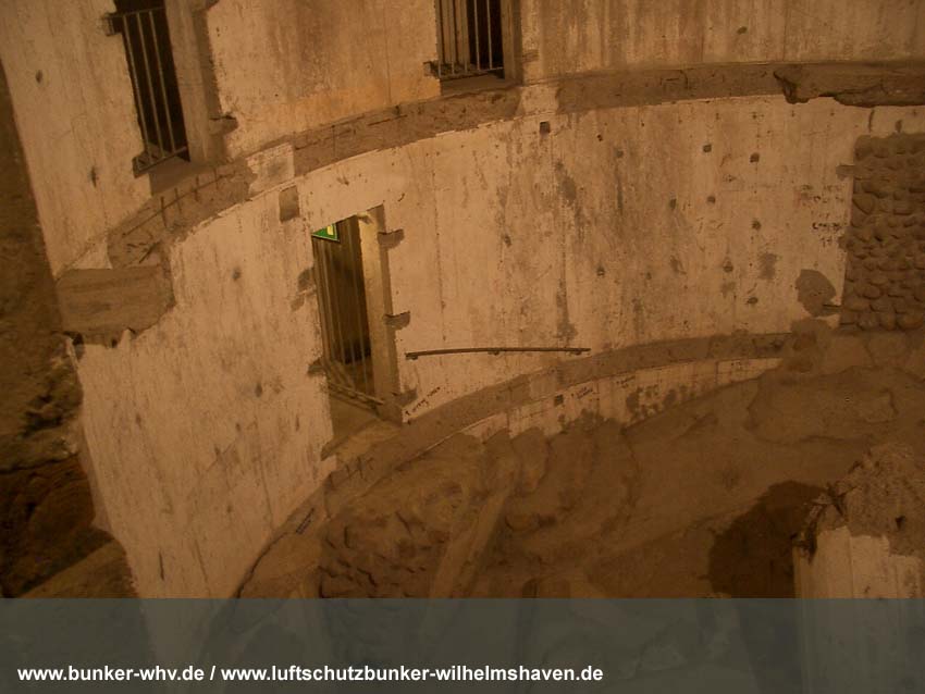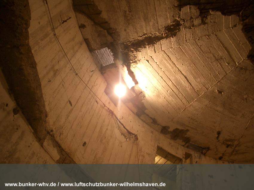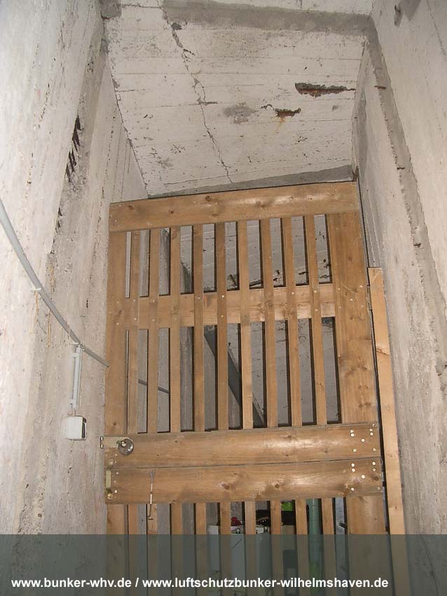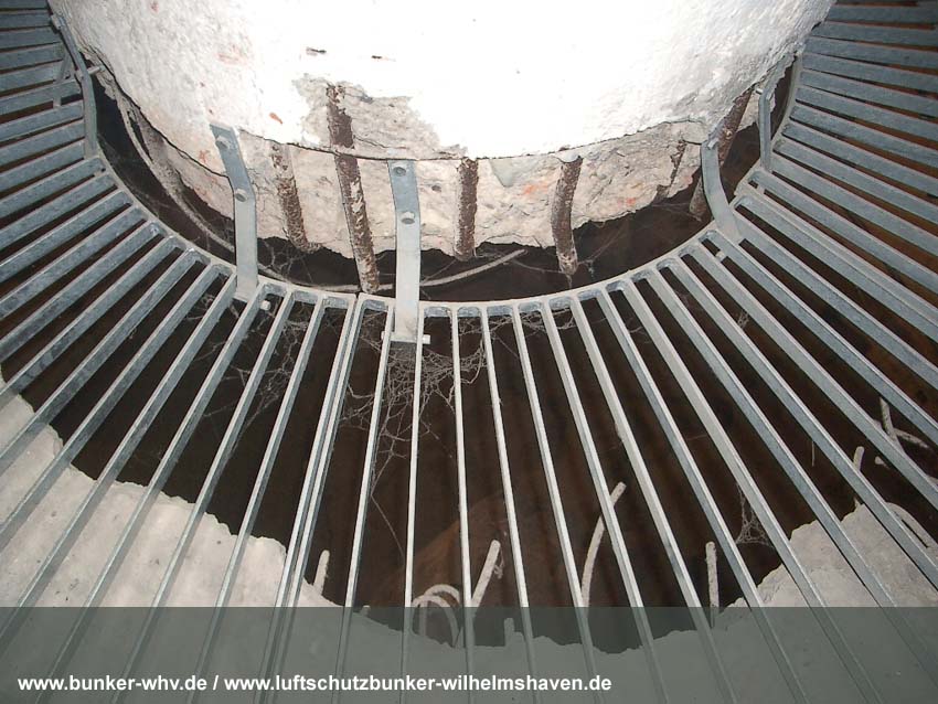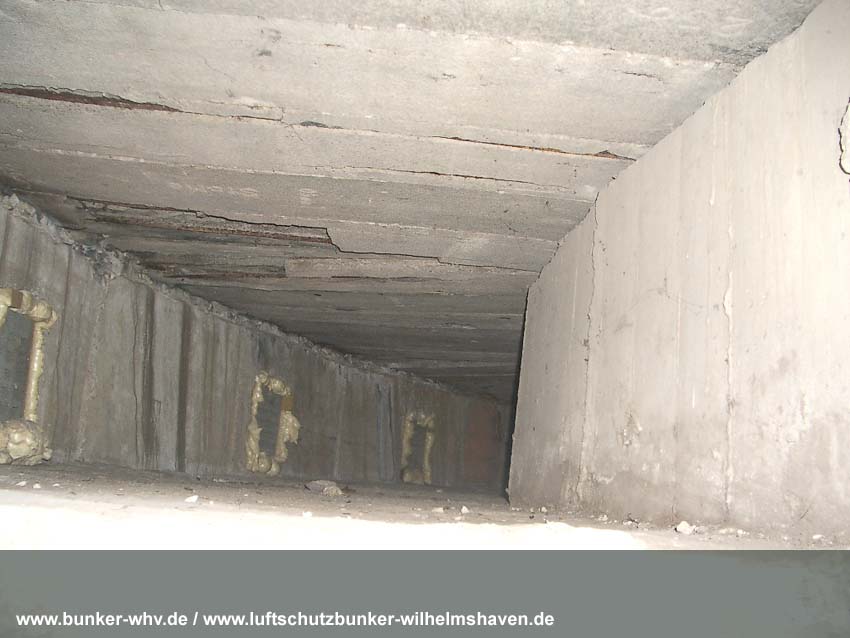 Die Lüftungsschächte des obersten Geschosses von innen in einem kleinen Druckprelltunnel oberhalb des Treppenhausganges. An den Enden des Lüftungsschachtbereiches waren Drucktüren mit Schleusen angebracht, da die Schächte selbst nicht über Schutzklappen verfügten. Dies erklärt, warum die Schächte bei dieser Bauserie nur im Halbrund angefertigt worden sind und nicht vollkommen die ganze Ebene umlaufend. Am Ende des Halbrundes sind jeweils die Schutztüren gewesen, welche im Falle eines Angriffes geschlossen wurden...