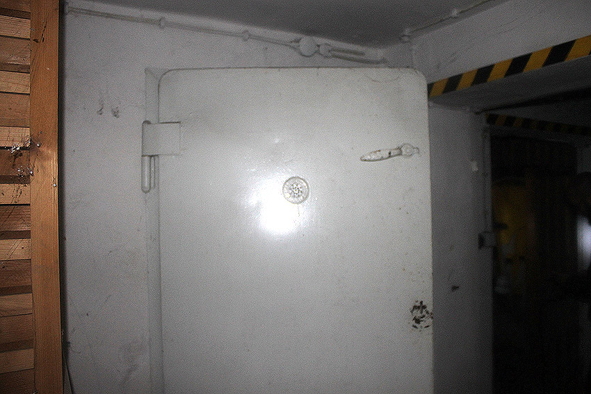 Blick in die Gasschleuse zur inneren Tür. Dahinter befindet sich der zweite Raum...