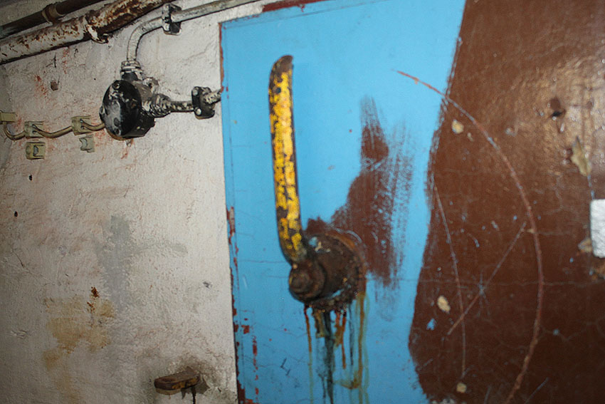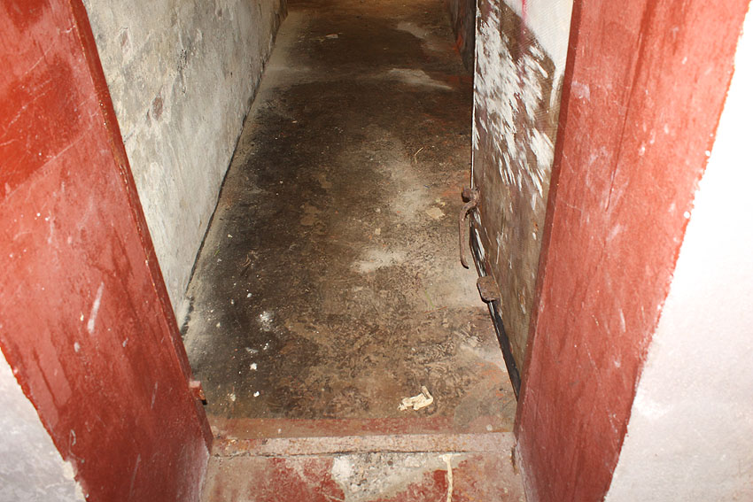 Hier war die Nordgasschleuse. Nachträglich wurde sie aufgebrochen (Öffnung links) - um einen größeren Raum für die ansässige Firma zu schaffen: