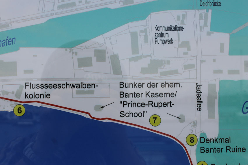 Im Juli 2012 wurde auf dem Grodendamm ein Hinweisschild über die Attraktionen und die Rundtour um den Banter See aufgestellt. Die WZ berichtete am 28. Juli 2012 darüber. Auch die beiden T 750 Banter Kaserne werden aufgeführt, Bunker "Banter Ruine" sogar abgebildet. So wünschen wir uns das. Jetzt werden die Bunker in Szene gesetzt für die Touristen, die durchaus interessiert an den Bauwerken sein werden. Endlich einmal positive Nachrichten!