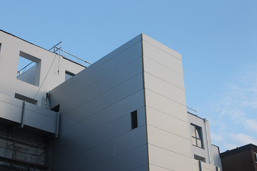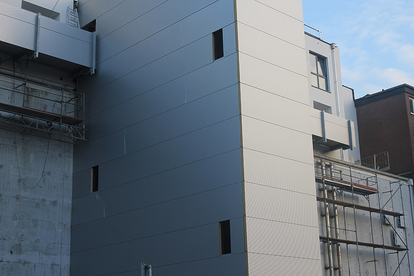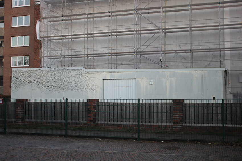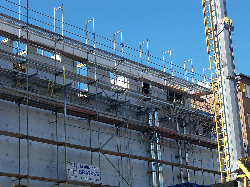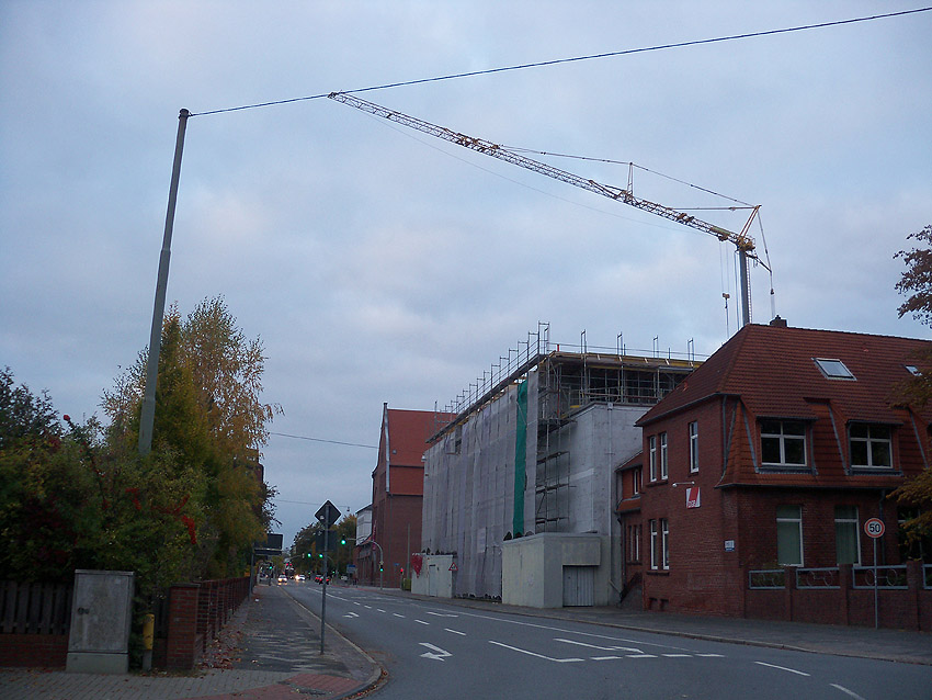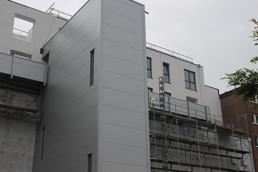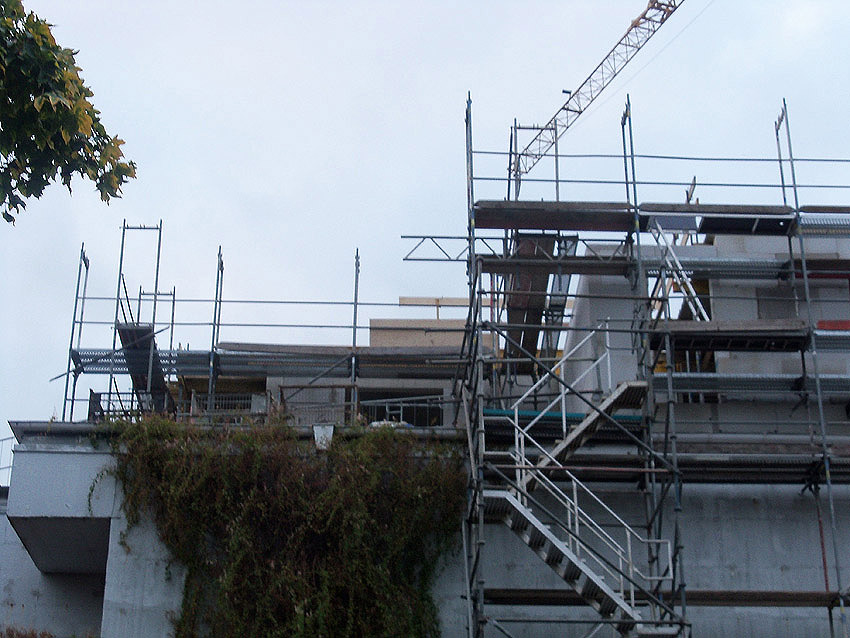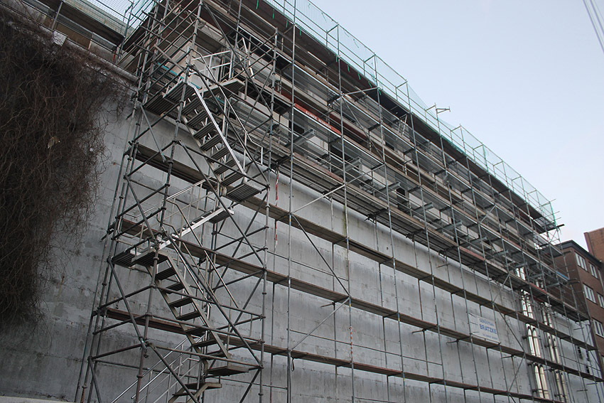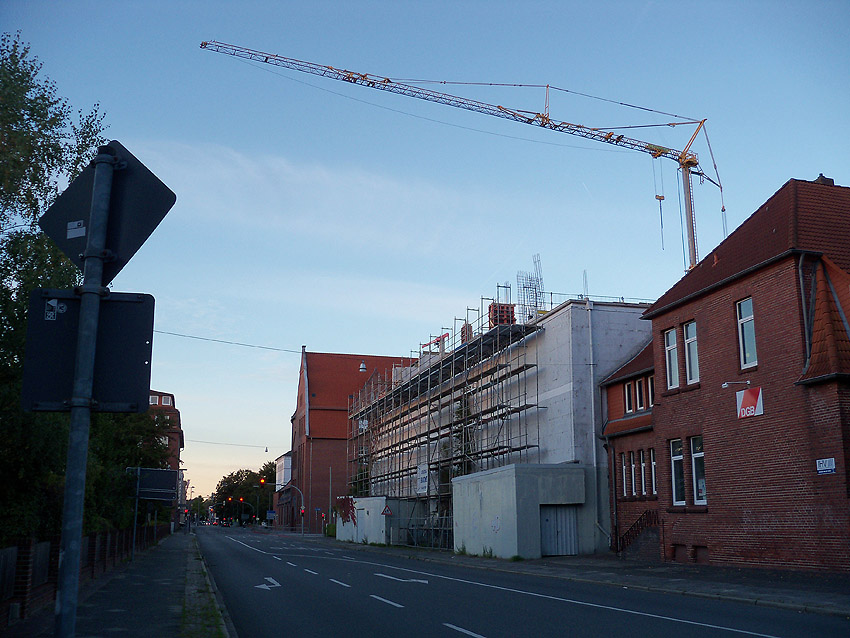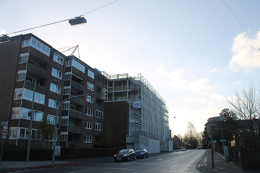 Am ehemaligen OP-Bunker Virchowstraße wird nun an der rückwärtigen Ostwand der Treppenhaus- und Fahrstuhlanbau für die aufgebauten Wohnungen errichtet. Wo genau der Fahrstuhl installiert wird, ist uns allerdings noch etwas unklar. Die Arbeiten gehen stetig weiter ihrer Vollendung entgegen.