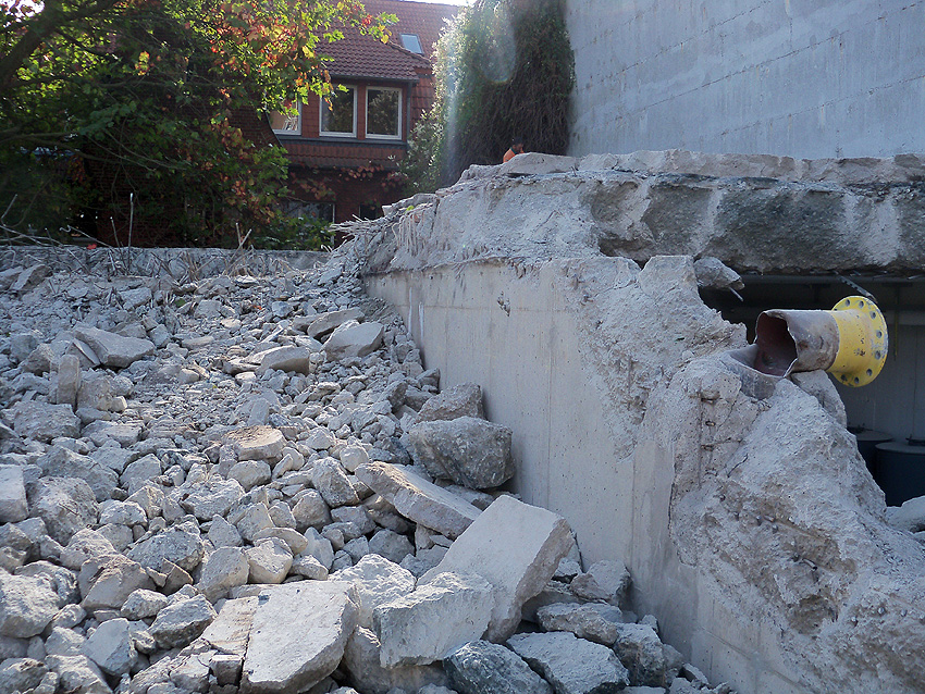 Der Schutt ist entfernt. Die Abrissarbeiten sind abgeschlossen. Zugänge in den Bunker und den Vorbau wurden vermauert. Wenn es hier weiter geht, sind wir wieder vor Ort.