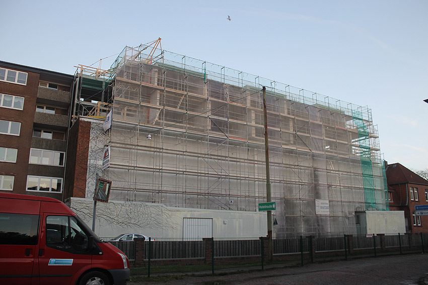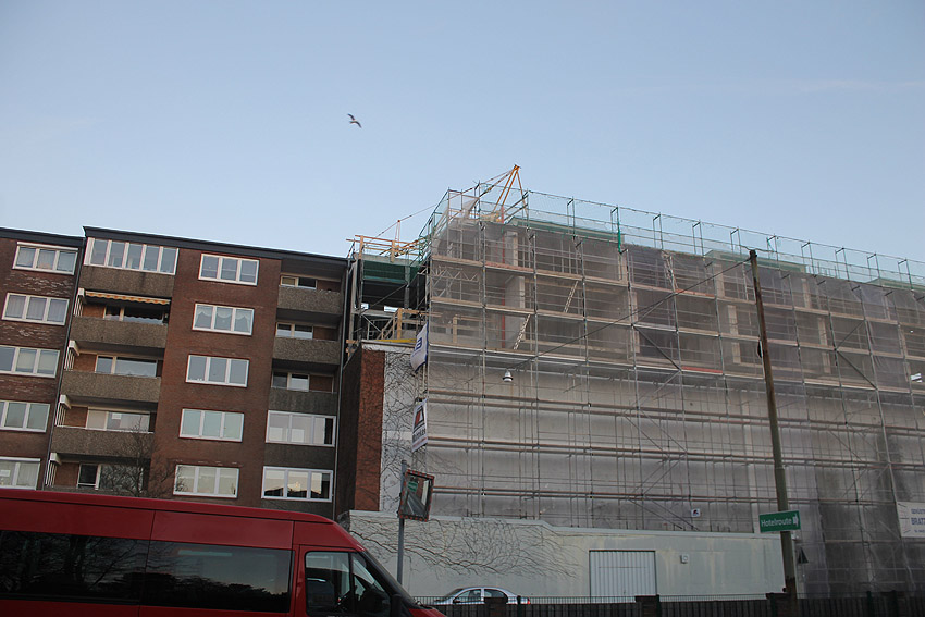 Der Bunker ist vorne wie hinten noch immer eingerüstet... Man darf gespannt sein, wann endlich die Arbeiten vollendet sind.