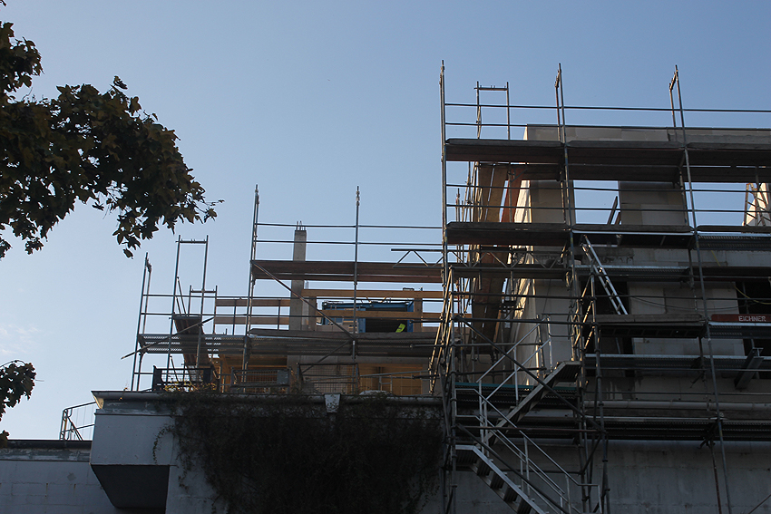 So sieht es mittlerweile am Bunker aus. Auf dem Dach sind erste Neubaustrukturen zu erkennen.