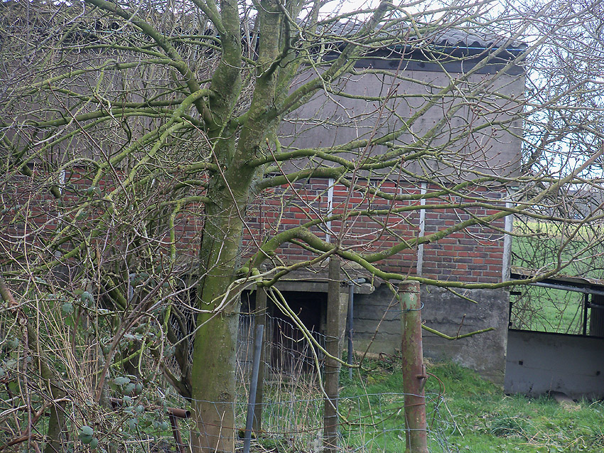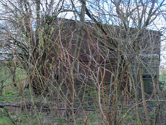 Dieser kleine Erdbunker direkt gegenüber der ehemaligen Schule Sanderhörne wurde noch vor dem dortigen unweit entfernt befindlichen Rundbunker errichtet. Da die Kapazitäten des kleinen Erdschutzraumes nicht reichten, wurde dann später der Rundbunker, auch weil er weitaus sicherer war, realisiert. Der Erdbunker wurde später mit dem ersichtlichen landwirtschaftlichen Gebäude überbaut.