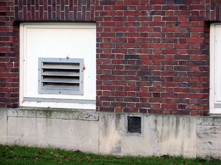 Letztes äußerlich erkennbares Relikt des LS-Kellers ist dieser kleine Lüftungsschacht. Die große Lüftung links entstand in der Nachkriegszeit.