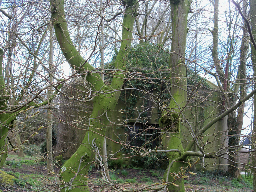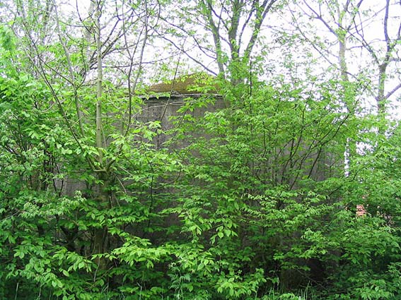 Interessant ist das Stahl-Lüftungsrohr hier rechts an der Bunkerseite.