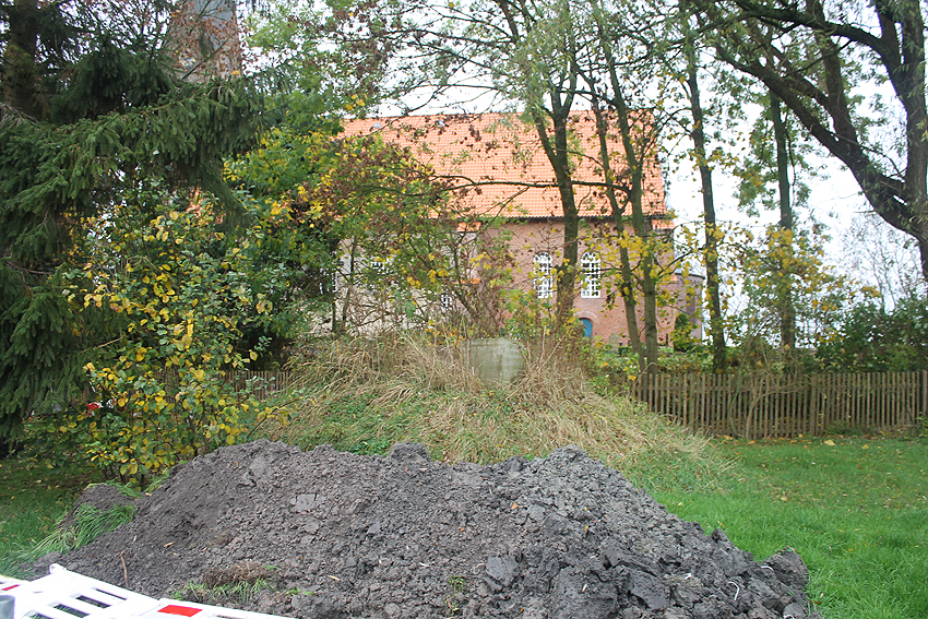 Bei dem folgenden Objekt in Höhe Am Tossenser Deich Ecke Mürrwarder Straße handelt es sich um den überschütteten gesprengten Maschinenbunker mit Flakstand der Flakbatterie Langwarden: