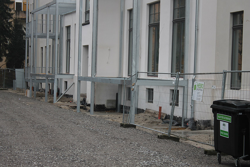 Die Sanierung des Gebäudes ist abgeschlossen. Etwa ein Viertel der Vorbauten ist abgerissen worden: