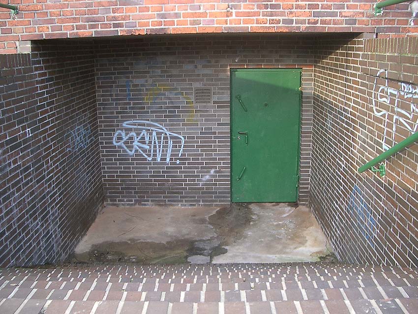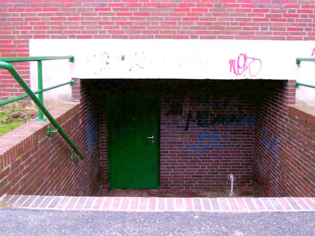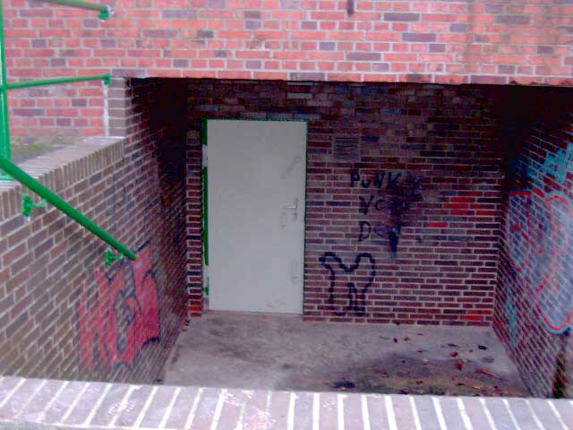 Zwei Verbunkerungen, eventuell versiegelte Notausstiege im Südostbereich des Komplexes. Hier befindet sich jedoch lediglich folgend beschriebene Versorgungssystemverbunkerung...