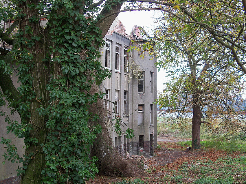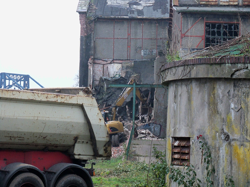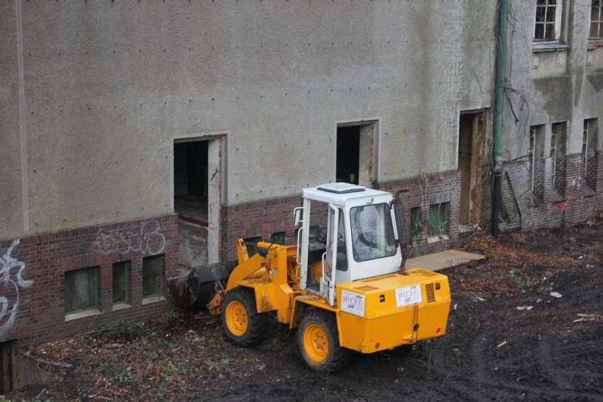 11.12.14: Nun wird im Südbereich direkt neben dem Verwaltungstrakt entkernt und scheinbar auch hier ein Abbruch vorbereitet.