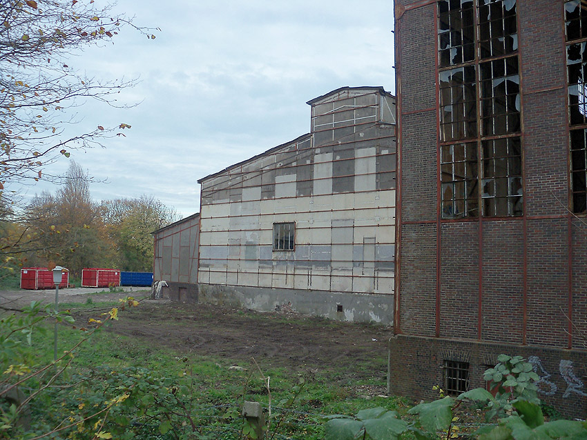 12.12.14: Am Verwaltungstrakt wurde heute ein nicht unerheblicher Teil an der Südseite abgebrochen. Damit verliert hier die Fassade der Südzentrale, genau wie im Nordbereich, ihre prägnante Struktur.