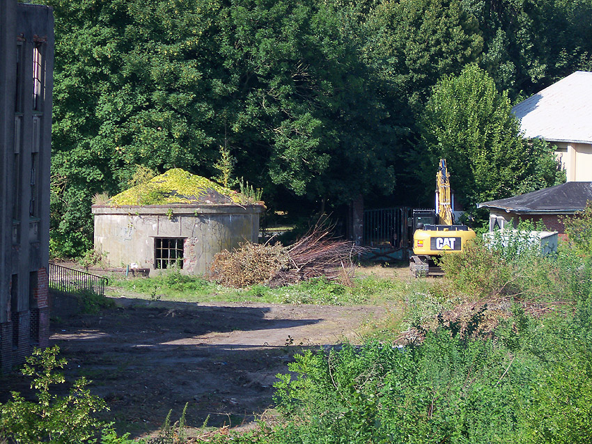 22.07.14: Auf dem Gelände der Südzentrale ist seit gestern, Montag, 21.07., schweres Abbruchgerät (Bagger, Raupe) am Werk. Das gesamte Gelände wurde bereits großflächig vom Buschwerk bereinigt, ebenso der kleine Rundbunker am Eingangstor. Im Inneren der Südzentrale wurden verschiedene Materialien groß angelegt gestapelt, teilweise verpackt. Dies ist als Vorbereitung eines Abrisses zu sehen... - Wertstofftrennung. Jederzeit kann das Baggergerät mit dem Abbruch beginnen. Wir sind nun jeden Tag vor Ort. Gekämpft, gehofft und doch verloren?