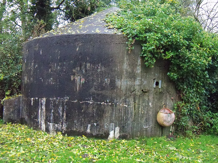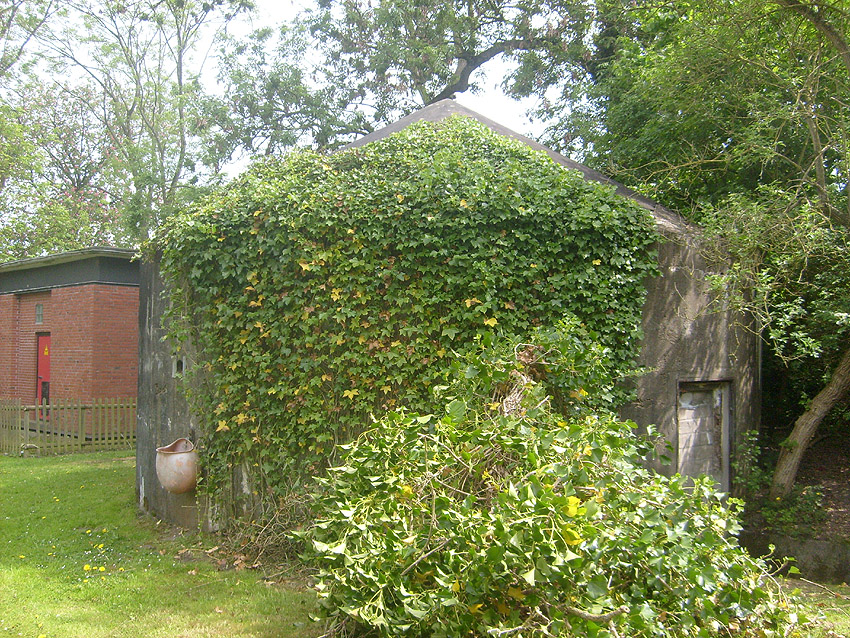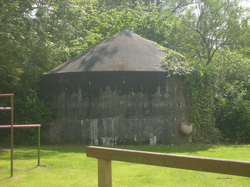 Dies muss der Notausstieg gewesen sein. Er scheint nach dem Krieg verschlossen worden zu sein. Es kann auch sein, dass der gesamte Betonblock nachträglich vor den Ausstieg gegossen wurde.