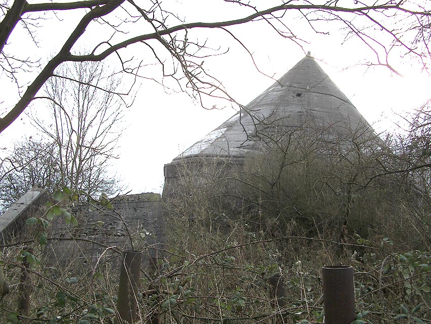 Von diesem Turm ist im Kuppelbereich lediglich Ebene 8 zur Hälfte erhalten / Geschossreste von Ebene 7, 6 und 1 (Erdgeschoss) existieren teilweise (im Gegensatz zur Skizze waren keine Sichtscharten in der Kuppel vorhanden!)...