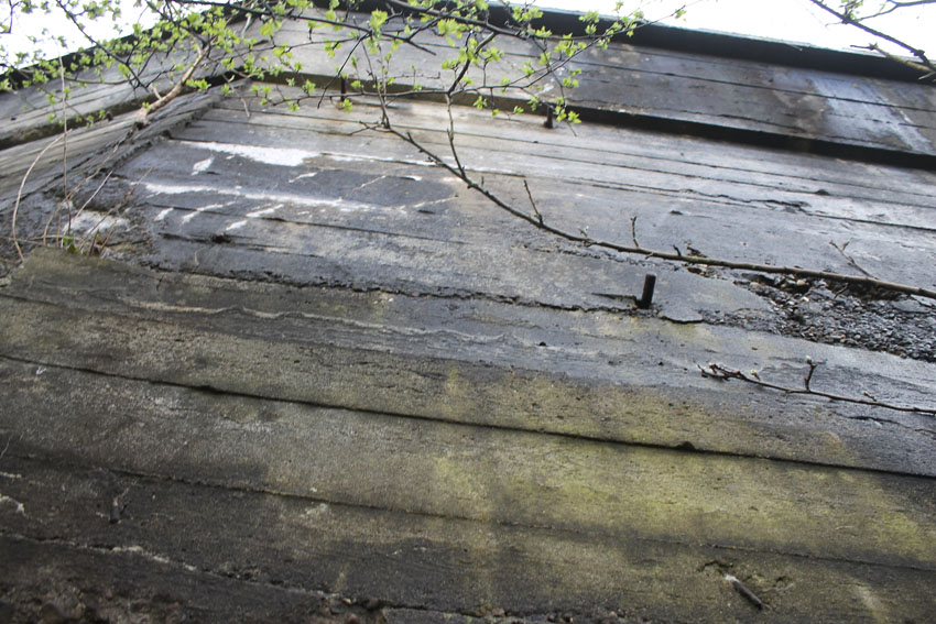 Dieser Turm besaß keine Sichtscharten in der obersten Ebene. Hier zu sehen sind lediglich Lüftungsschächte. Beobachtungsstände mit Sichtscharten waren immer Schwachpunkte im Falle eines Treffers. Da der unmittelbar neben diesem gelegene andere Luftschutzturm über vier große Sichtscharten für einen Rundumblick verfügte, waren diese hier überflüssig und nicht notwendig.