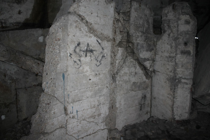 ...ein Luftschacht, zu erkennen die zickzackartige Abknickung zur Detonationsdruckminderung...