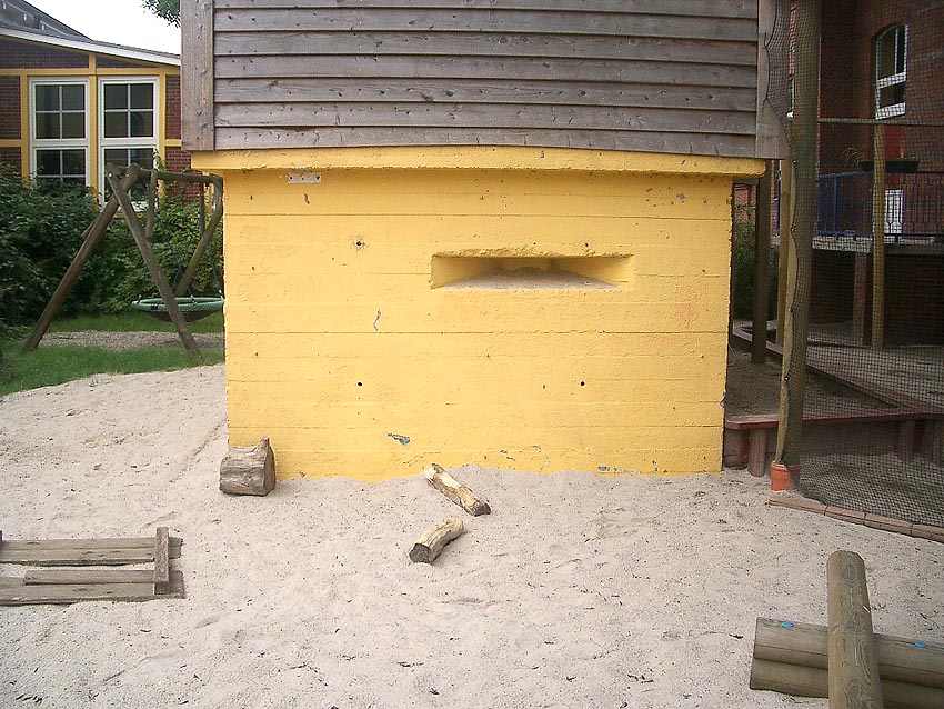 Mittlerweile wurde die Brandwache grün gestrichen. Die dritte neue Farbe für das Bauwerk inzwischen (weiß, gelb, grün). Vielen Dank an Herrn Bramste für die Genehmigung zur Veröffentlichung des Bildmaterials!