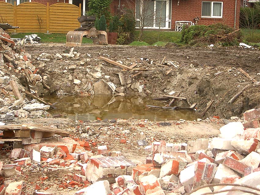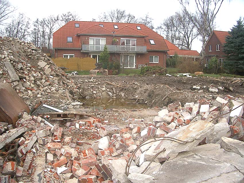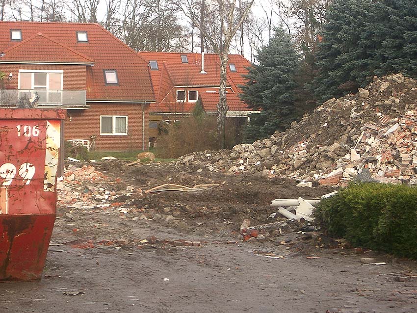 Wir kamen zu spät! Zusammen mit dem gesamten Gebäudebestand der Firma "Blumen Fass" wurde für uns völlig überraschend Ende November bis zum 4. Dezember 2006 der kleine Bunker auf dem Grundstück dem Erdboden gleichgemacht.