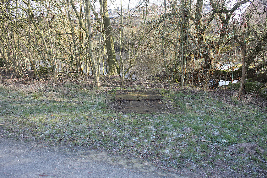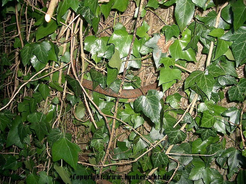 Am Westrand des ehemaligen Fort Schaar (ein Großteil des Geländes ist heute mit Wohnhäusern bebaut), wo am Anfang des Zweiten Weltkrieges auch die Luftverteidigung Wilhelmshavens koordiniert wurde, befindet sich am dortigen Graben außerhalb des ehemaligen Fortbereiches diese historische Stahlklappe. Sie ist versiegelt. Im Inneren kann man durch eine kleine Öffnung hindurch leider nur schlecht etwas erkennen. Kurios ist die unmittelbare Nähe zum Wassergraben. Eigentlich müsste jeder tiefere historische Innenraum unter der Klappe längst unter Wasser stehen. Daneben befinden sich diverse Betonquader, einige mit Metallaufnahmen versehen. Was war das? Auf 1945er Luftbildern ist genau an der Stelle lediglich ein undefinierbarer kleiner Punkt zu erkennen. Hatten diese Strukturen etwas mit Luftschutz zu tun?